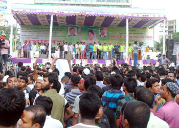 এদিকে, শনিবার ভোর থেকেই ১৮ দলীয় জোটের অন্যতম শরীক জামায়াত-শিবিরের হাজার হাজার নেতাকর্মী খণ্ড খণ্ড মিছিল নিয়ে সমাবেশস্থলে উপস্থিত হয়েছেন। এখনও তাদের খণ্ড খণ্ড মিছিল আসছেই।
