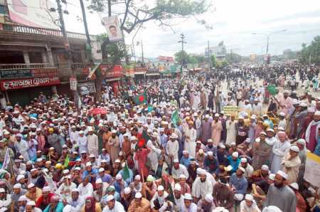 বিক্ষোভকারীরা হয়রত মোহাম্মদ (সা:) এর অবমাননাকারী ব্লগার ও লেখকদের কঠিন আইন করার দাবিতে রবিবার এ বিক্ষোভের ডাক দেয়।