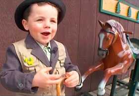 হাতে লাঠি, মাথায় হ্যাট, গায়ে মেয়রের ব্যাজ লাগানো জ্যাকেট। গুরুগম্ভীর মুখে বড়দের সঙ্গে পায়ে পা মিলিয়ে যাচ্ছে মিনেসোতার ডরসেট শহরের ৪ বছরের মেয়র রবার্ট টাফ্টস।