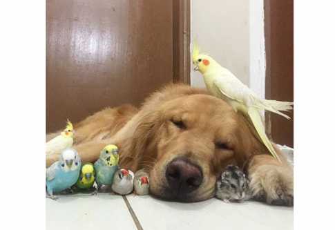 বন্ধুত্বের বন্ধনে জড়ানো ওই তিন প্রাণী প্রজাতি হলো বব নামের একটি সোনালি কুকুর, আটটি পাখি আর একটি হ্যামস্টার। খেলা, ঘুম, মোজ-মাস্তি সব একই সঙ্গেই করে তারা। তাই নয়, সামাজিক যোগাযোগ মাধ্যম ফেসবুক আর ইনস্টাগ্রামেও বেশ জনপ্রিয় তারা।